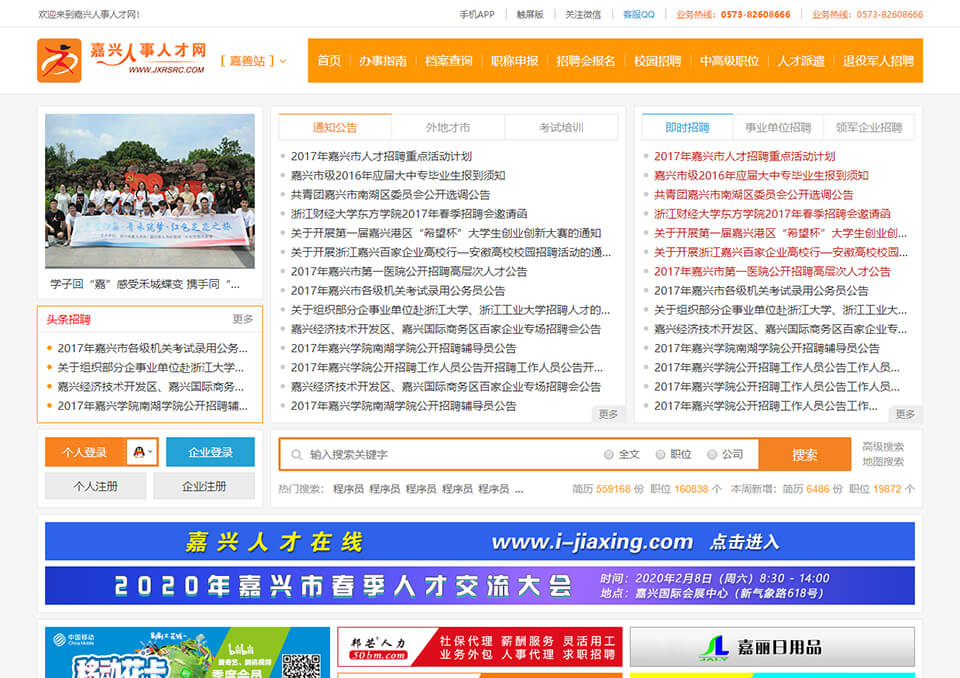 公司自主開發(fā)和運(yùn)營的嘉興人才網(wǎng)( www.573job.com )和舟山人才網(wǎng)( www.93job.com )等平臺(tái),經(jīng)過多年發(fā)展已經(jīng)成為當(dāng)?shù)刈罹哂绊懥Α⒆罹邫?quán)威性、最具招聘效果的人才網(wǎng)站之一。